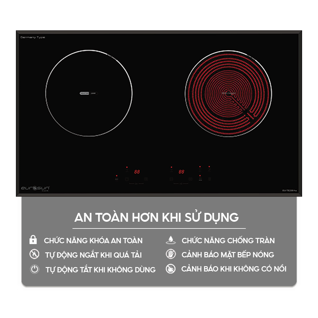 Sản phẩm Bếp từ kết hợp hồng ngoại EU-TE259Plus đến từ thương hiệu EUROSUN được lắp ráp và sản xuất tại Malaysia theo tiêu chuẩn Châu Âu, cùng với thiết kế sang trọng và đầy cảm xúc sẽ làm cho căn bếp nhà bạn trở nên tinh tế và tiện nghi.