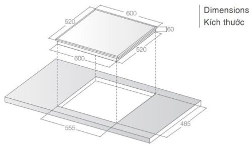 | Kích thước khoét đá | 555 x 485 (mm) |