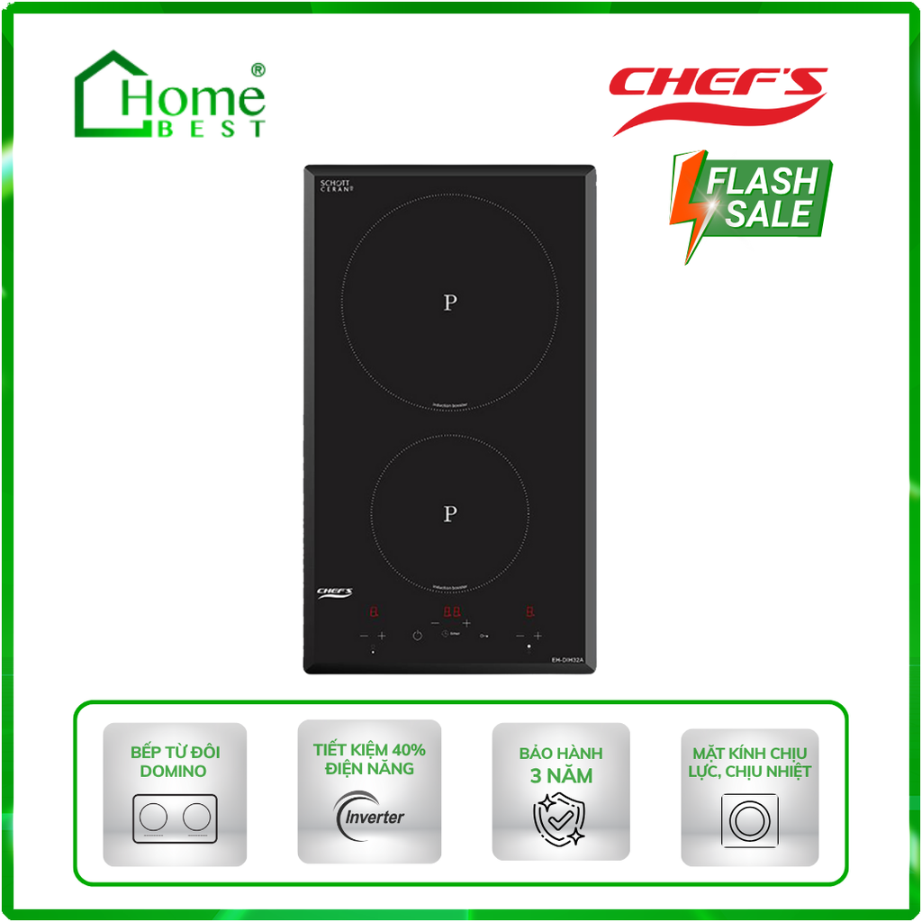 Đến với Home Best, chúng tôi tự hào cung cấp đến khách hàng đa dạng các dòng bếp từ CHEFS nổi tiếng, cam kết về chất lượng và nguồn gốc sản phẩm chính hãng. Chúng tôi tự tin mang đến cho quý khách hàng dịch vụ chăm sóc khách hàng tận tâm và chính sách bảo hành, hậu mãi chuyên nghiệp nhất.