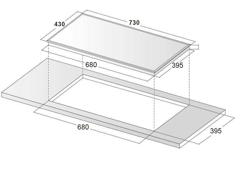 | Kích thước khoét đá | 680 x 395 (mm) |