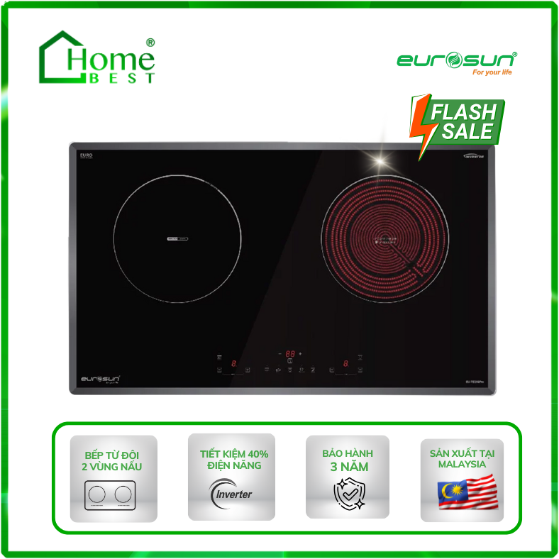 Sản phẩm Bếp từ kết hợp hồng ngoại EU-TE259Pro đến từ thương hiệu EUROSUN được lắp ráp và sản xuất tại Malaysia theo tiêu chuẩn Châu Âu, cùng với thiết kế sang trọng và đầy cảm xúc sẽ làm cho căn bếp nhà bạn trở nên tinh tế và tiện nghi.