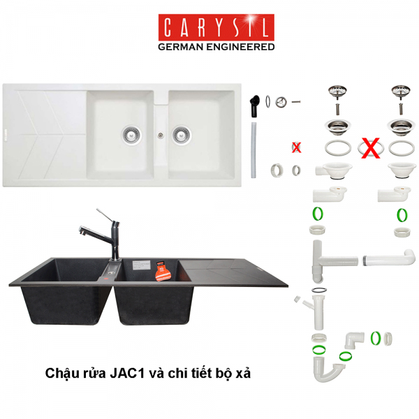 2. Các chức năng, hệ thống trên Bồn rửa bằng đá nhân tạo Jazz D200 JAC1-10/Arena Xám tro