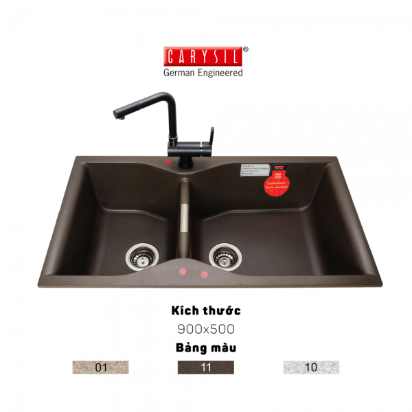 Sản phẩm được sản xuất bởi công nghệ Đức Chất liệu làm từ bột đá Granite cao cấp Thiết kế lắp âm tinh tế và sang trọng Hệ thống 2 bồn rửa linh hoạt Độ bền rất cao, chống các tác nhân bên ngoài Đặc tính kháng khuẩn cao Đảm bảo an toàn cho sức khỏe của người sử dụng Không bị xuống màu trong quá trình sử dụng Dễ dàng vệ sinh bồn rửa Chống thầm hiệu quả Khả năng chịu nhiệt cao lên đến 230 độ C Hệ thống màu gồm 3 màu |