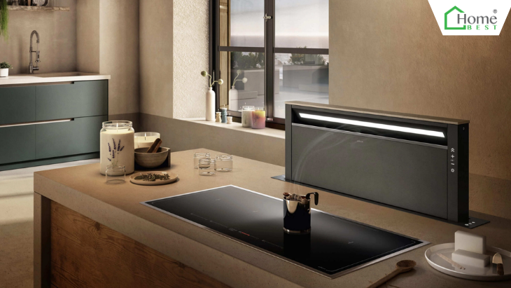 Đây là dòng máy cao cấp, được tích hợp trực tiếp vào mặt bếp và hoạt động bằng cách hút khói từ dưới lên.