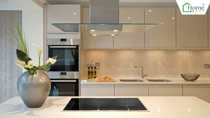 Ưu điểm: Thiết kế tối giản, tinh tế. Không chiếm nhiều không gian phía trên bếp.