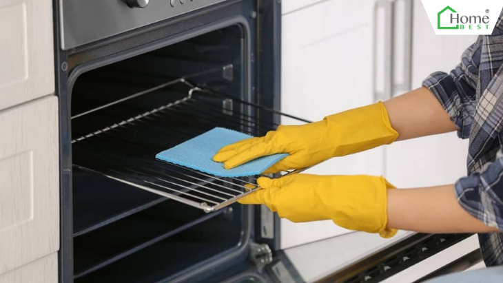 Vệ sinh lò nướng thường xuyên: Lau chùi lò nướng sau mỗi lần sử dụng để loại bỏ dầu mỡ và thức ăn thừa bám dính.