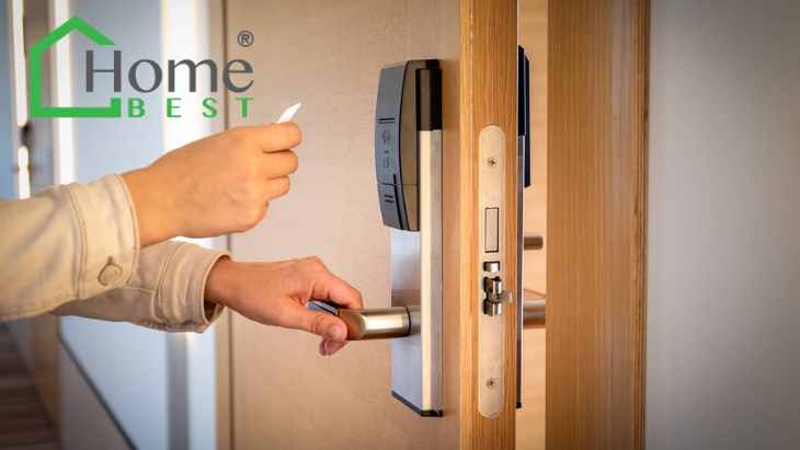 Nếu khóa cửa điện tử của bạn có tính năng sử dụng thẻ từ, bạn có thể sử dụng thẻ từ của mình để mở khóa.