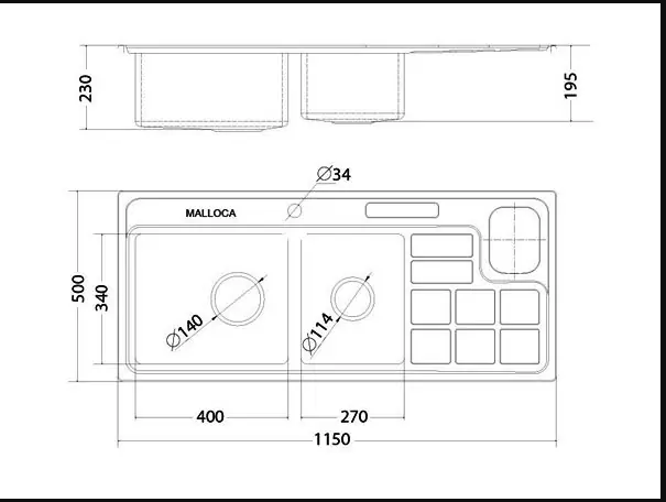 Chậu rửa inox Malloca MS 8817 N có 2 hố chậu có kích thước lớn 1150x500mm và độ sâu ấn tượng 230mm tạo một nơi rộng rãi, thoải mái cho người dùng vừa cắt, gọt, vừa rửa các loại sản phẩm, các dụng cụ nhà bếp vô cùng thuận tiện. Làm từ chất liệu cao cấp nên bề mặt của chậu chịu được lực tác động, khó bị trầy xước, biến dạng trong quá trình sử dụng và còn dễ dàng vệ sinh lau chùi vết bẩn giúp chậu luôn sáng bóng, sạch sẽ.