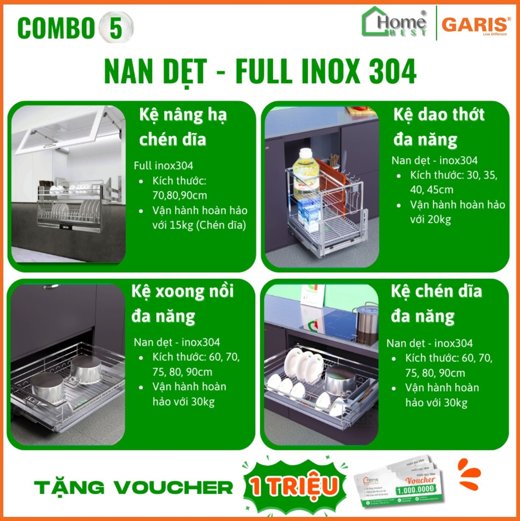 COMBO PHỤ KIỆN TỦ BẾP CAO CẤP NAN DẸT - INOX304 - HÀNG CHÍNH HÃNG GARIS