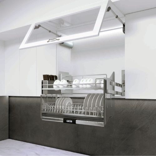 Hơn cả một giải pháp lưu trữ, Kệ nâng hạ chén bát di động GROB còn mang đến sự trải nghiệm sử dụng tuyệt vời cho cả gia đình. Bộ kệ chén đĩa di động có thể nâng hạn lên xuống nhẹ nhàng, tận dụng tối đa không gian trên cao một cách tiện lợi.