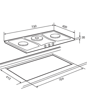 | Kích thước khoét đá | 704 x 412 mm |