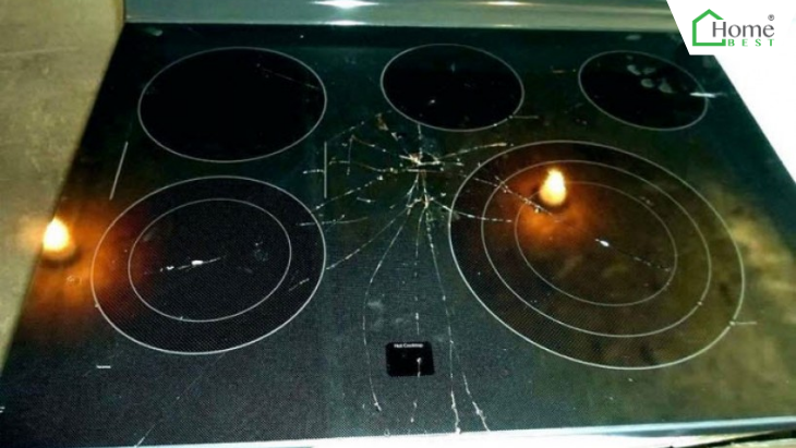 Vết nứt, vỡ lớn: Nếu vết nứt, vỡ ảnh hưởng đến vùng nấu hoặc bảng điều khiển, bạn nên thay mặt kính ngay lập tức.