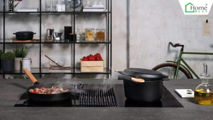 Bếp từ kết hợp hút mùi: Đây là dòng sản phẩm được ưa chuộng nhất hiện nay nhờ khả năng nấu nướng nhanh, chính xác và dễ vệ sinh.
