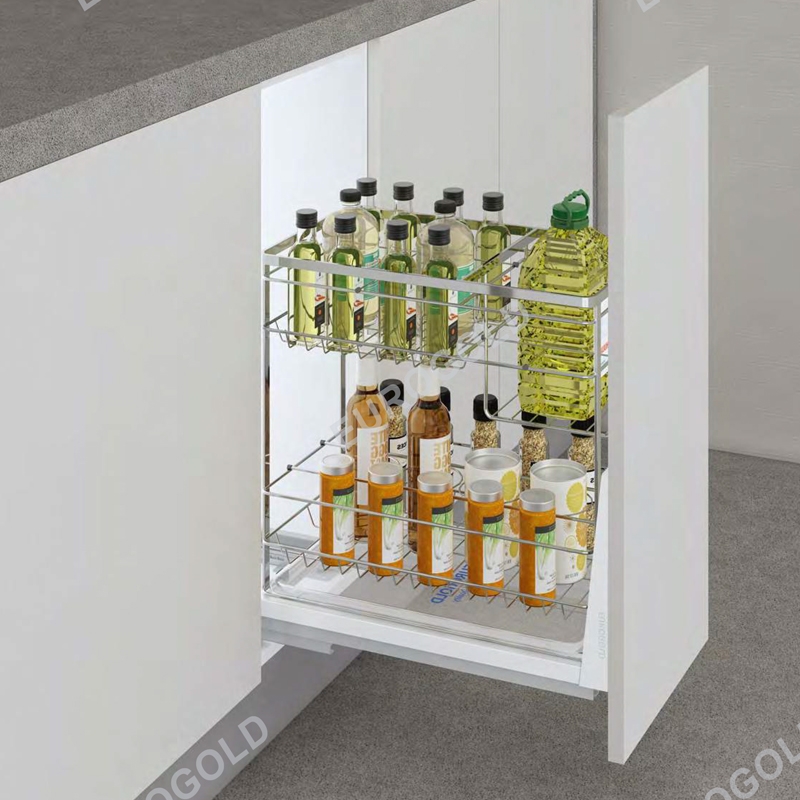 Giá gia vị inox nan dẹt, ray giảm chấn Eurogold EP2220 là sản phẩm vô cùng hữu ích cho không gian tủ bếp dưới. Các loại chai lọ, gia vị như nước mắm, dầu ăn, tương … và các gia vị nấu nướng hàng ngày, dao thớt nhờ nó có thể được sắp xếp một cách khoa học, sạch sẽ, gọn gàng tiết kiệm không gian trong tủ bếp. Giá gia vị inox nan dẹt, ray giảm chấn Eurogold EP2220 này hứa hẹn sẽ làm hài lòng ngay cả những vị khách khó tính nhất.
