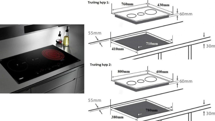 2. Lựa chọn kích thước bếp từ đôi phù hợp:
