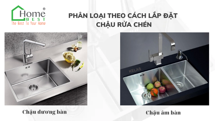 Ngoài việc phân loại theo số lượng hố, bạn cũng có thể phân loại chậu rửa bát inox dựa trên cách lắp đặt: