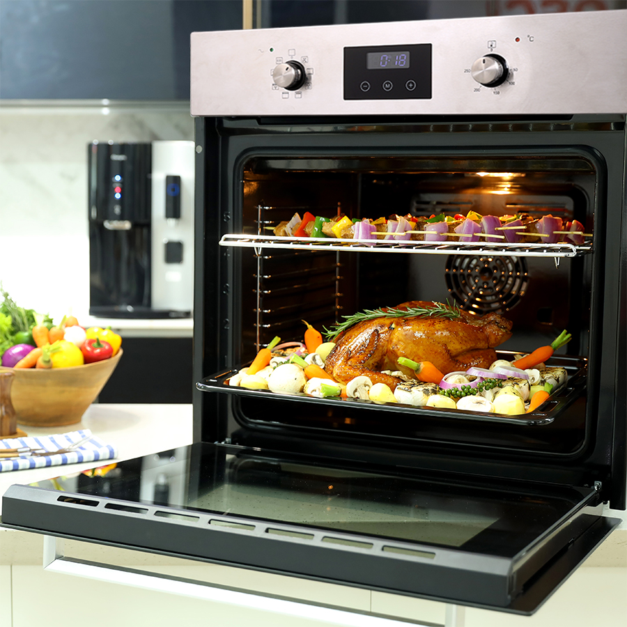 Lò nướng âm tủ Kocher KOEU-68S08F có dung tích lớn 68lít nên các chị em nội trợ có thể chế biến một lướng lớn thực phẩm cho gia đình có đông thành viên chỉ trong một lần thực hiện. Lò hoạt động dựa trên cơ chế đối lưu nhiệt hiện đại, tiên tiến với luồng nhiệt lượng phân bố đều khắp lò, xung quanh, bên trên, bên dưới kết hợp với que thăm dò nhiệt độ thịt và thiết bị Rotisserie giúp thịt nướng vàng và giòn, giúp cho thực phẩm chín nhanh từ trong ra ngoài mà vẫn giữ được hương vị tươi ngon.