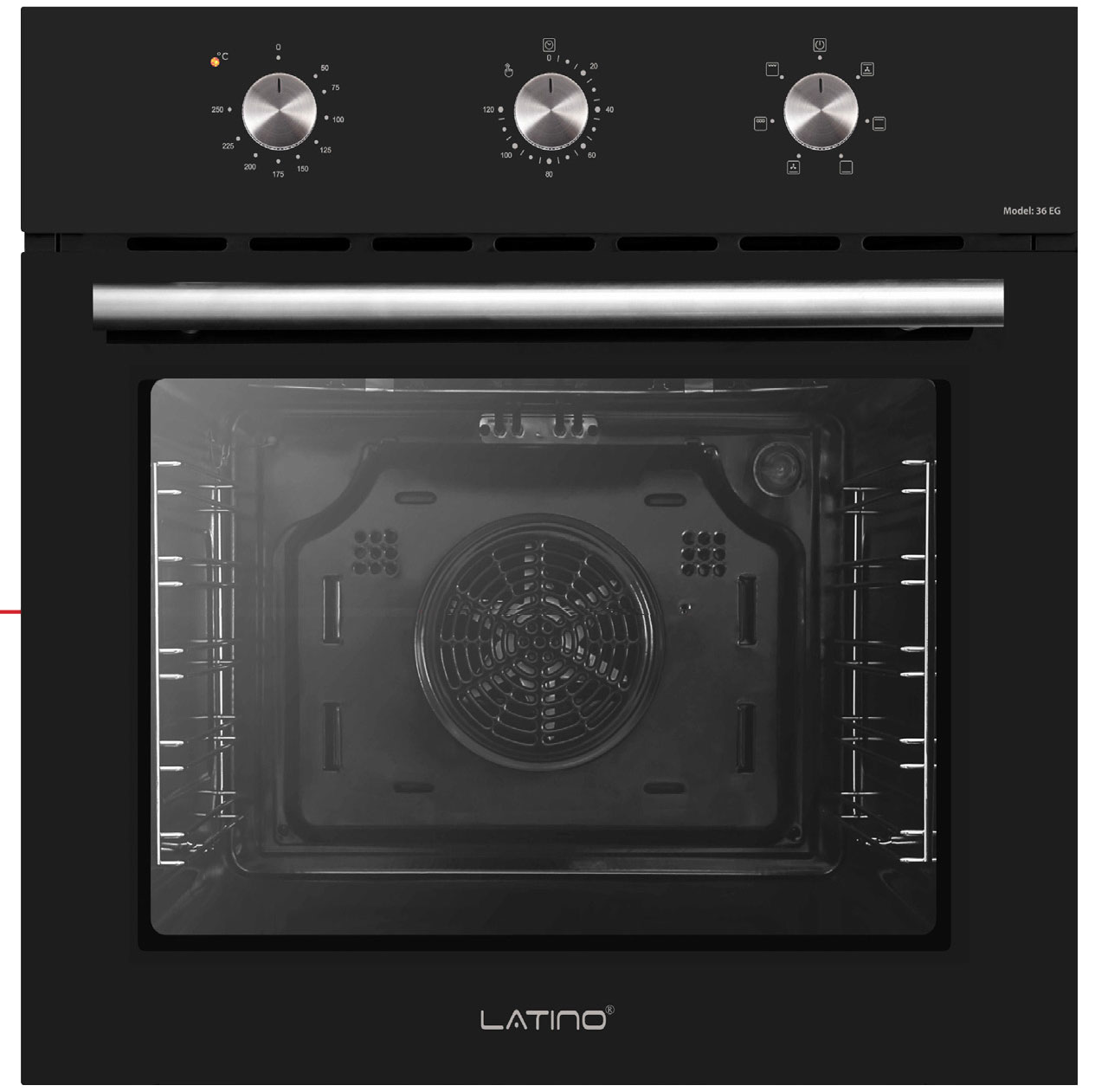 Lò nướng âm tủ Latino 36EG được gắn quạt đối lưu trực tiếp vào mặt trong của thành lò nướng, giúp cho nhiệt lượng được lan tỏa rộng khắp khoang lò, thức ăn sẽ chín đều các mặt mà vẫn giữ nguyên chất dinh dưỡng và đảm bảo độ tươi ngon khi sử dụng và tùy vào những loại thức ăn mà người dùng có thể dùng hoặc không dùng quạt đối lưu. Hầu hết, chức năng quạt đối lưu thường được sử dụng cho các món nướng có sấy khô, món quay, các món bánh,…