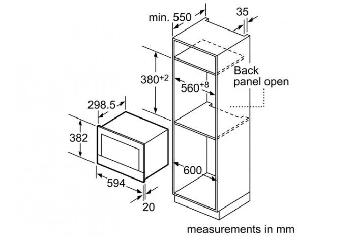 Lò vi sóng Bosch BFL523MS0B thuộc dòng lò vi sóng âm tủ vừa giúp tiết kiệm diện tích lắp đặt vừa tăng thêm vẻ đẹp hiện đại cho căn bếp, thiết kế kiểu dáng nhỏ gọn thích hợp lắp đặt trong không gian bếp nhỏ, dung tích lò 20L cùng đía quay đường kính 25.5cm thoải mái sử dụng cho hộ gia đình Việt