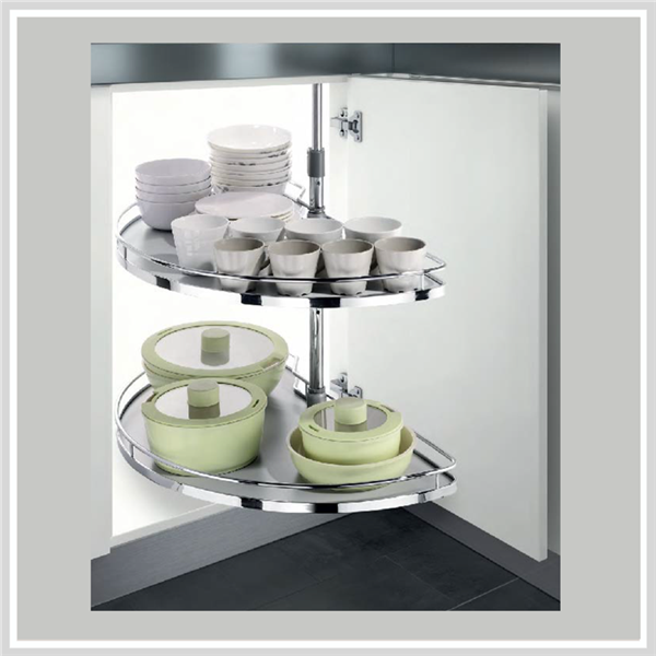 Mâm xoay 1/2 đáy gỗ 900mm Crom được thiết kế với mặt kệ là một hình tròn bị khoét góc vuông để khớp với góc tủ sẽ giúp bạn cất giữ, lấy độ một cách linh hoạt, không cần phải với tay quá sâu vào bên trong vì chỉ cần xoay nhẹ là mọi thứ bạn cần sẽ được trưng ra trước mắt bạn.