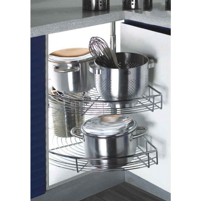 Mâm xoay 1/2 Higold 1/2 có dạng hình bán cầu, 2 tầng gắn với 1 trục xoay linh hoạt. Đáy được thiết kế bằng nhiều thanh cong inox ghép lại tạo thành mặt phẳng đỡ xoong, nồi… giúp kệ không bị trữ nước, bụi bặm tiện lợi để cất giữ trực tiếp vừa với rửa xong chưa ráo nước. Góc bếp sẽ được tận dụng để sử dụng hết sức hợp lý cùng với việc sử dụng kệ góc này sẽ làm tăng tính thẩm mỹ cho tủ bếp của bạn.