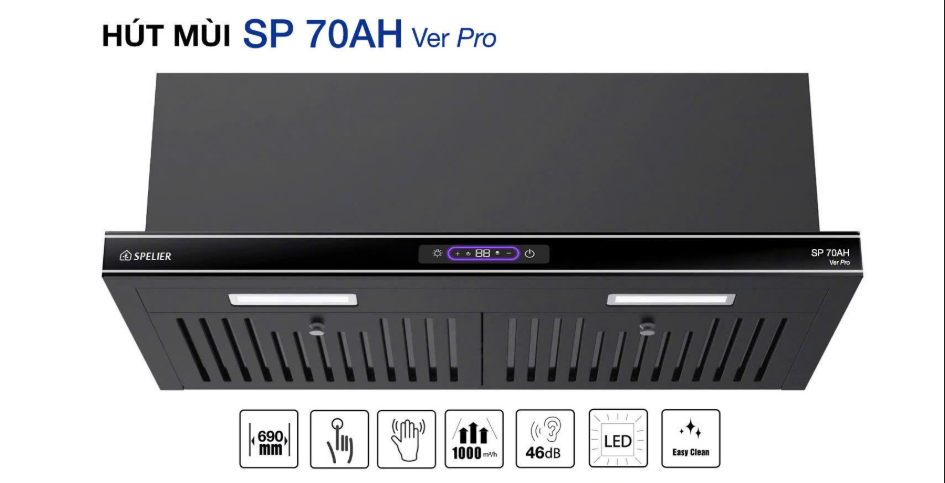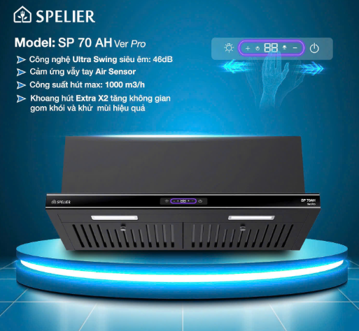Máy hút khói Spelier SP 70AH Ver Pro là một sản phẩm cao cấp đến từ thương hiệu Spelier sẽ là 1 thiết bị thông minh giúp cho quá trình nấu nướng trở nên dễ dàng và bảo vệ sức khỏe cho gia đình của bạn. Đây là dòng sản phẩm hút âm tủ với các chức năng đặc biệt, được lắp ráp bởi vật liệu hạng nhất giúp làm sạch không khí, giữ căn bếp trở lên thoáng mát và đảm bảo yếu tố thẩm mỹ cũng như tính bền bỉ theo thời gian.