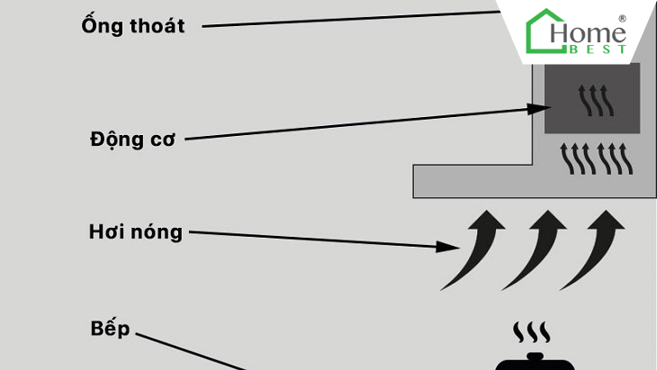 Hút khí: Khi bạn bật máy, động cơ bên trong sẽ tạo ra lực hút mạnh mẽ, hút không khí chứa các hạt bụi, hơi dầu mỡ, mùi thức ăn từ khu vực bếp nấu.