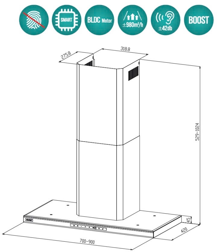 Với kích thước 900 mm, máy có thể kết hợp với rất nhiều kiểu bếp vì hầu hết các bếp đều có kích thước tương xứng. Máy phù hợp với những không gian rộng rãi sẽ tăng thêm vẻ sang trọng cho gian bếp của bạn.