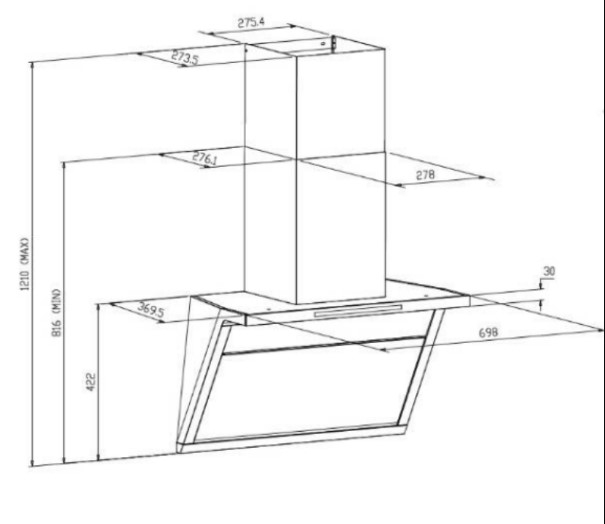 | Loại sản phẩm | Máy hút mùi kính vát |