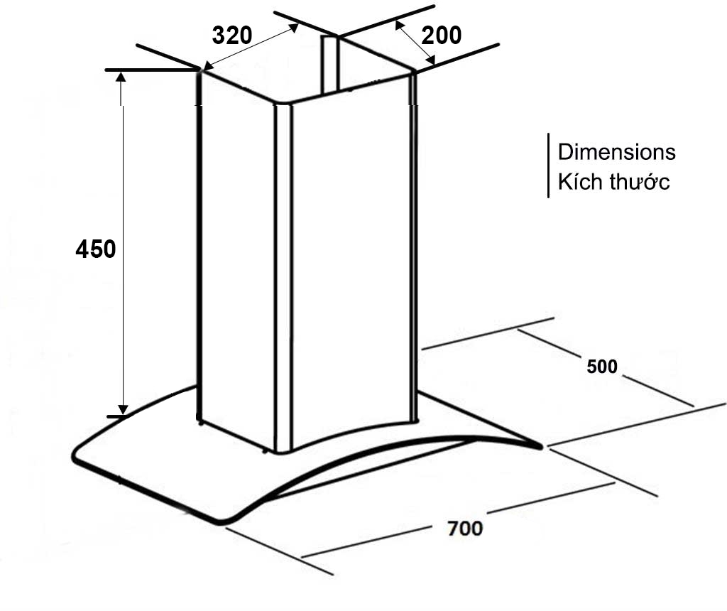 | Loại sản phẩm | Máy hút mùi kính cong |