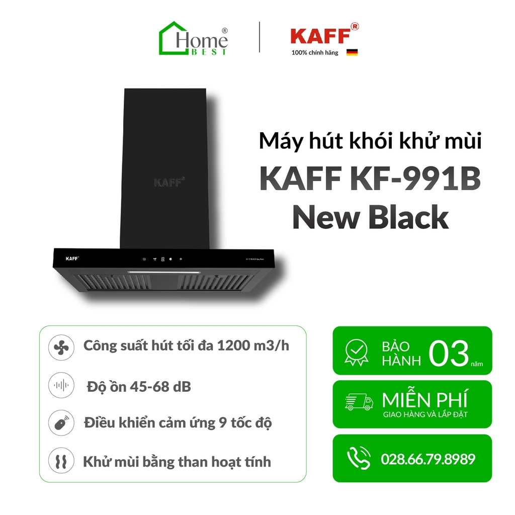 Máy hút khói KAFF KF-991B New Black là một sản phẩm cao cấp đến từ thương hiệu Kaff sẽ là 1 thiết bị thông minh giúp cho quá trình nấu nướng trở nên dễ dàng và bảo vệ sức khỏe cho gia đình của bạn. Đây là dòng sản phẩm hút kính ngang với các chức năng đặc biệt, được lắp ráp bởi vật liệu hạng nhất giúp làm sạch không khí, giữ căn bếp trở lên thoáng mát và đảm bảo yếu tố thẩm mỹ cũng như tính bền bỉ theo thời gian.