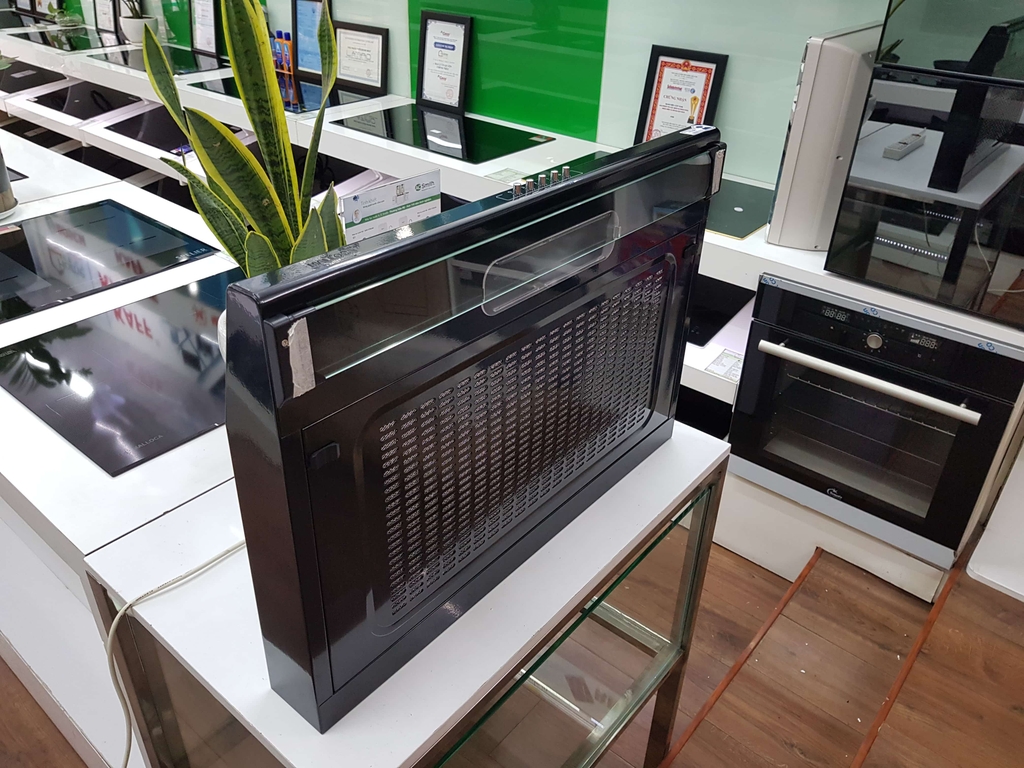 Loại máy hút mùi có mặt kính ngang, máy được lắp đặt linh hoạt có thể gắn tường độc lập hoặc thiết kế âm vào tủ bếp, giúp người dùng dễ dàng lắp đặt tùy theo sở thích và không gian bếp của gia đình. |