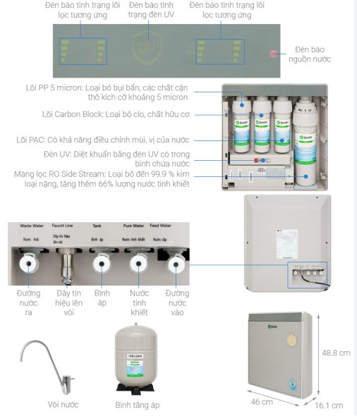 Máy lọc nước A.O.Smith là thiết bị lọc nước cho gia đình hướng đến cuộc sống văn minh, hiện đại, quan tâm sức khỏe. Giúp cung cấp nước sạch phục vụ nhu cầu uống nước trực tiếp, nước dùng nấu ăn hay những hoạt động sinh hoạt khác. Thiết kế máy lọc nước sang trọng, nhỏ gọn, tạo sự tiện lợi khi lắp đặt. Sản phẩm phù hợp với những hộ gia đình có không gian bếp hạn chế và có sẵn khu vực gầm tủ. Như vậy, A. O. Smith UV AR75-U2 vừa cung cấp nước tinh khiết sử dụng, vừa tối ưu hóa không gian nhà ở một cách hiệu quả.