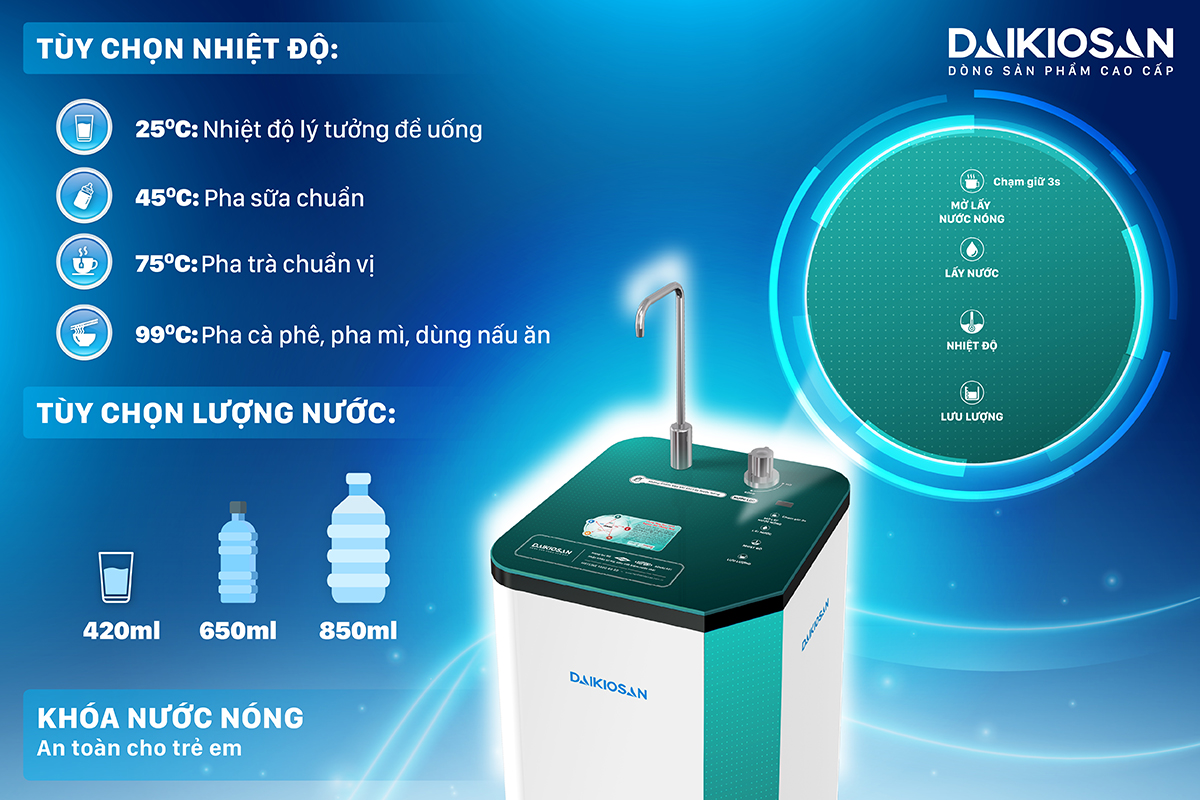 Máy lọc nước nóng nguội siêu nhanh Daikiosan DSW-43210I là sản phẩm công nghệ thông minh, hiện đại, đa năng cho mọi gia đình.