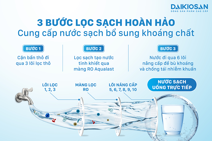 9 cấp lọc, cho ra nguồn nước sạch đạt chuẩn uống trực tiếp