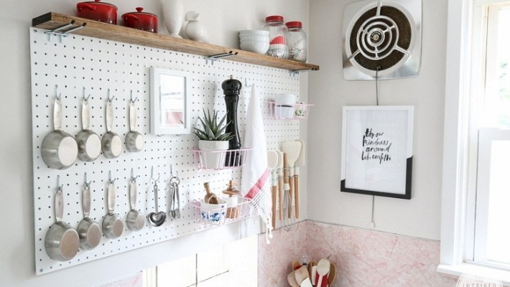 Sử dụng giá treo, kệ, móc: Tận dụng tối đa không gian lưu trữ để tránh lãng phí diện tích và giúp dụng cụ luôn gọn gàng, ngăn nắp.