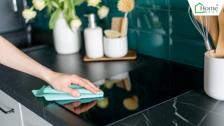 Sau mỗi lần nấu, lau sạch mặt bếp bằng khăn mềm và dung dịch chuyên dụng để tránh dầu mỡ bám lâu ngày.