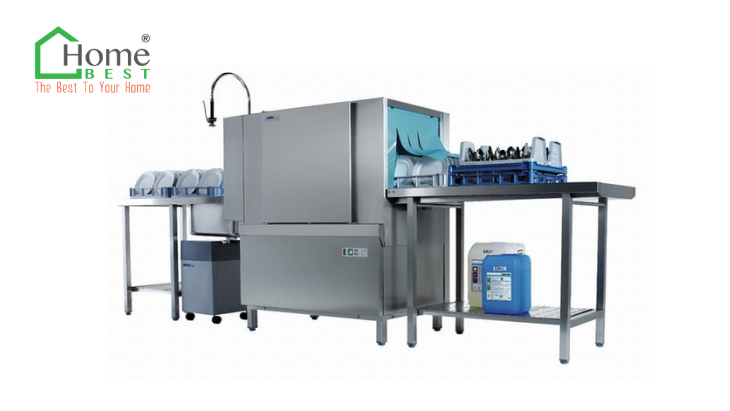 - Máy rửa chén công nghiệp: Với diện tích và công suất khá lớn, loại máy rửa chén này thường được dùng để vệ sinh chén đĩa trong các nhà hàng, nhà bếp, khách sạn,... giúp tiết kiệm nước một cách tối ưu, tiết kiệm thời gian và làm sạch lên đến 95%.