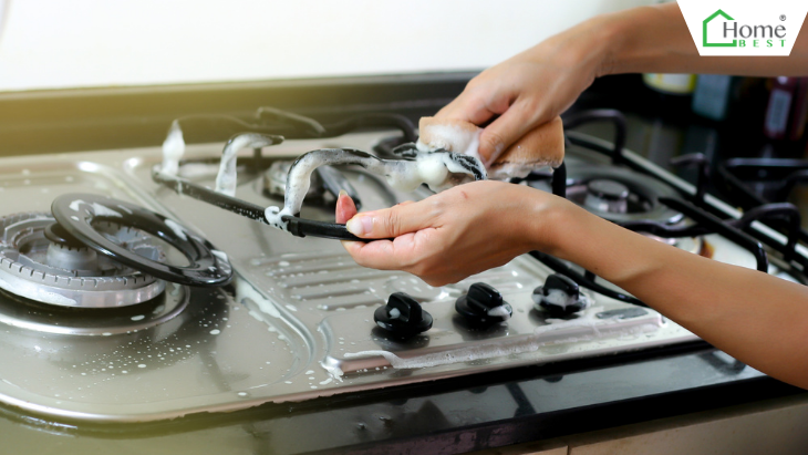 Làm sạch bếp gas thường xuyên để ngọn lửa cháy đều, không bị nghẹt hoặc yếu do cặn bẩn.