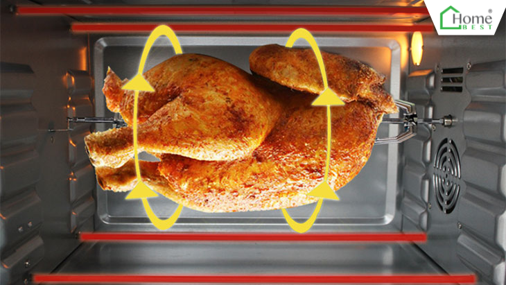 Sử dụng chế độ hẹn giờ để kiểm soát thời gian nướng, tránh lãng phí điện do nướng quá lâu. Quạt đối lưu giúp luân chuyển nhiệt đều hơn, rút ngắn thời gian nướng.