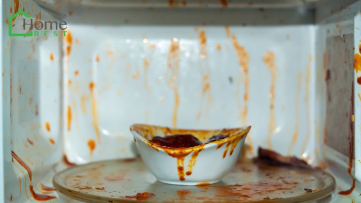 Dầu mỡ và cặn thức ăn bám dính trong khoang lò vi sóng có thể hấp thụ sóng vi ba và tạo ra tia lửa. Do đó, vệ sinh lò vi sóng thường xuyên bằng cách lau chùi khoang lò bằng khăn ẩm sau mỗi lần sử dụng.