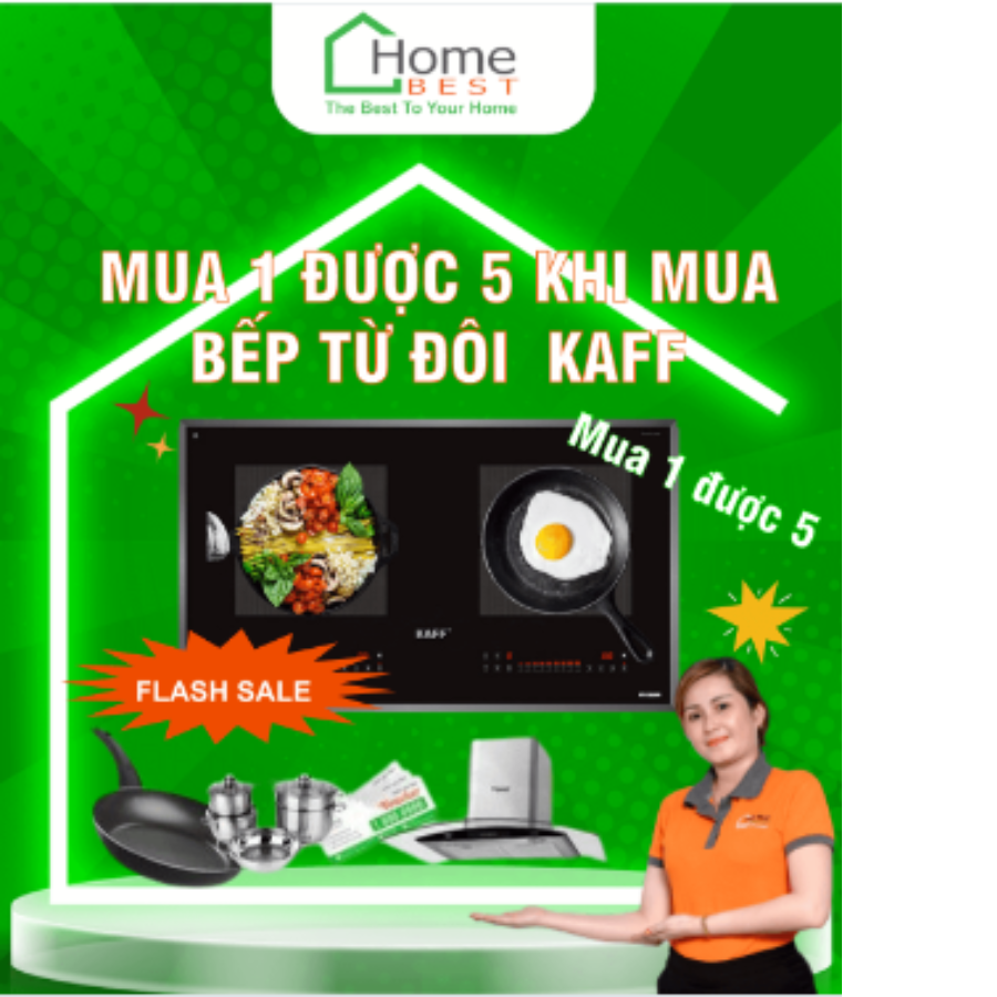 Trong thời gian diễn ra chương trình khuyến mãi, bạn có cơ hội sở hữu Trọn bộ Bếp hút khi mua Bếp từ đôi KAFF với mức giá siêu tiết hời mua 1 được 5 khi mua tại HOME BEST.